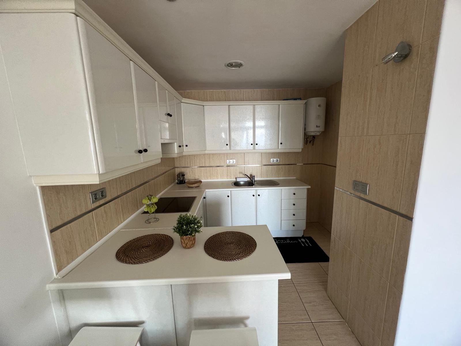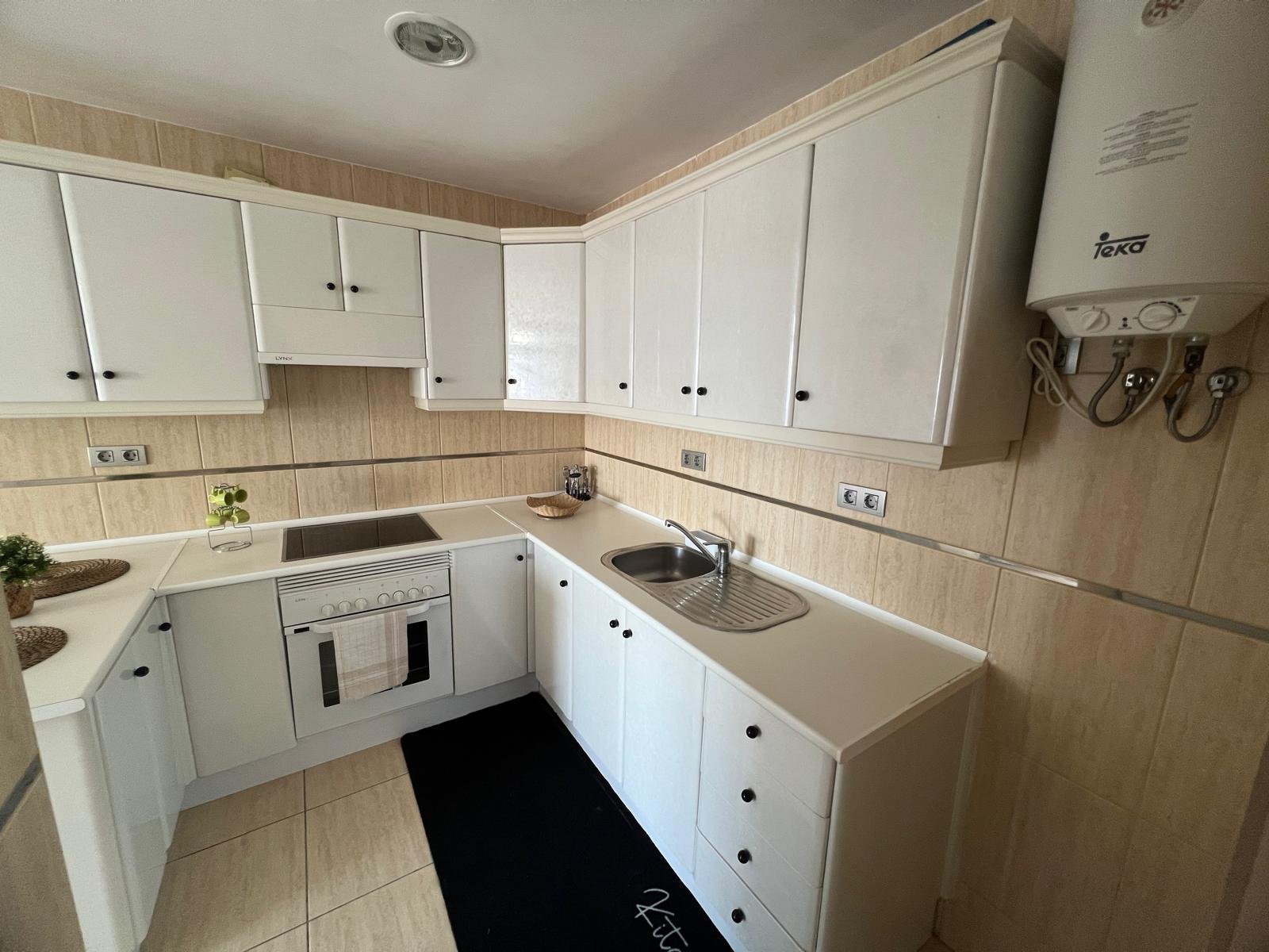 Equipación: nevera, calentador eléctrico, placa eléctrica, horno, extractor, lavadora)