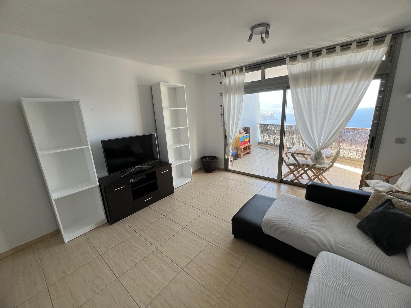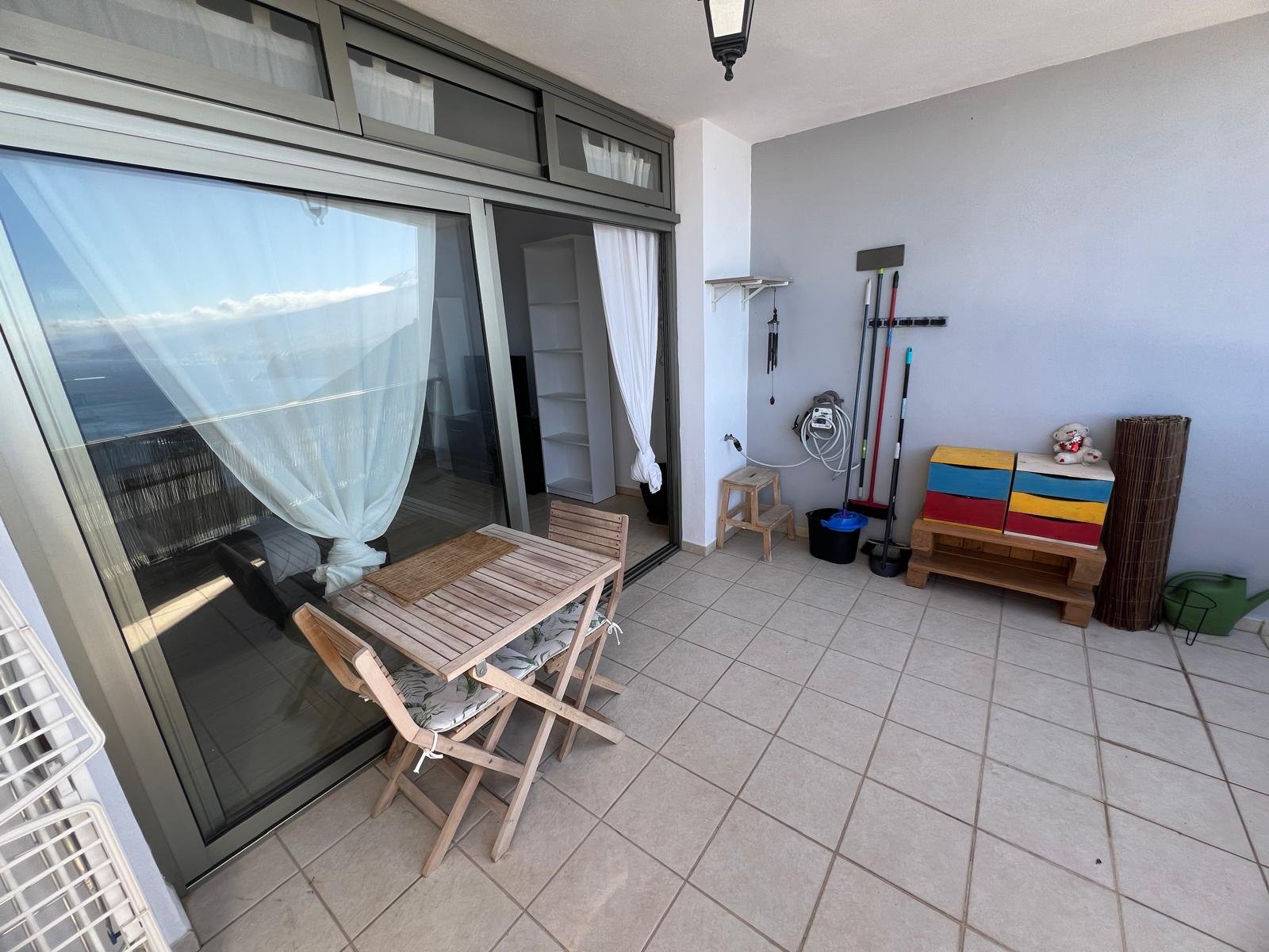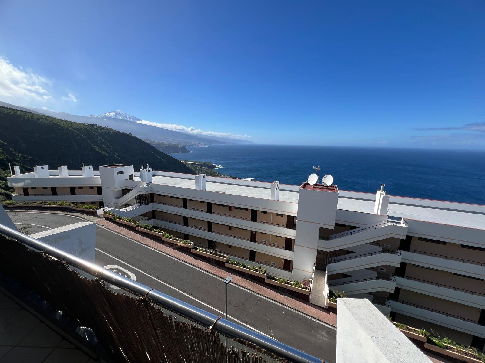 Compuesto por: 1 Dormitorio (con armario empotrado), Cocina-Salón (amueblada y equipada), Baño (con bañera) y amplia terraza techada, con unas vistas increíbles a la costa norte y El Teide).