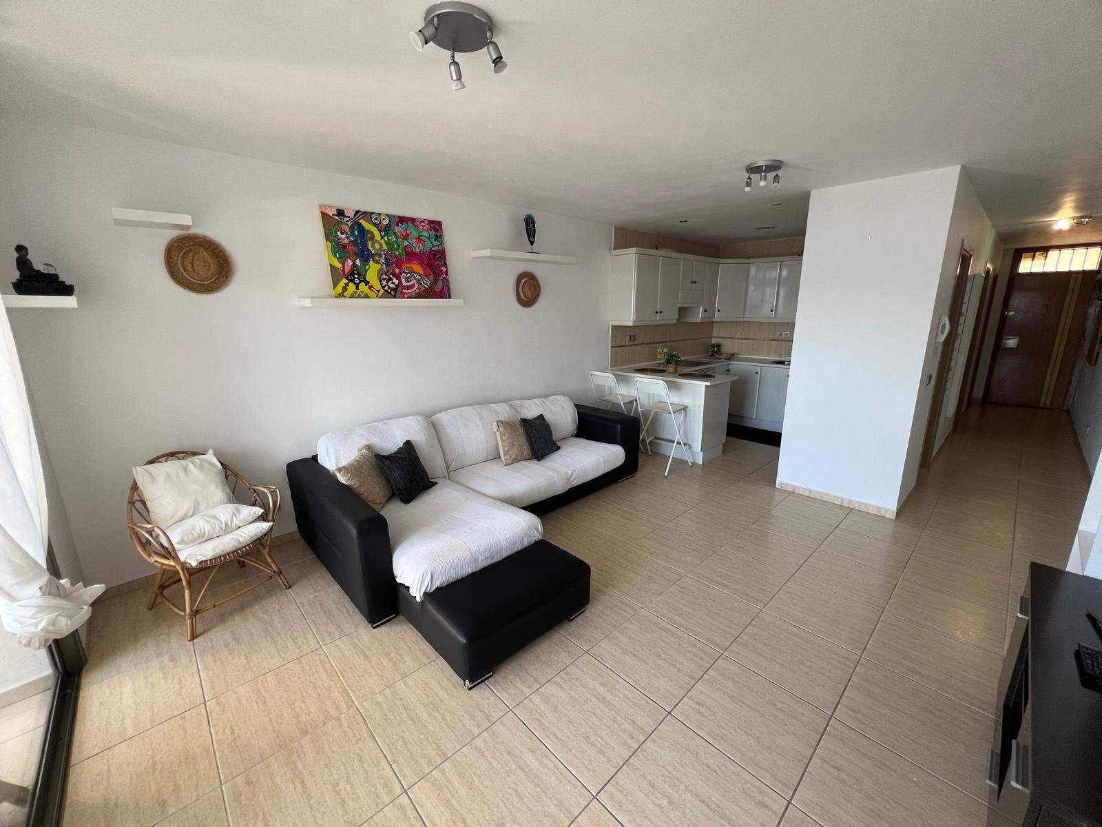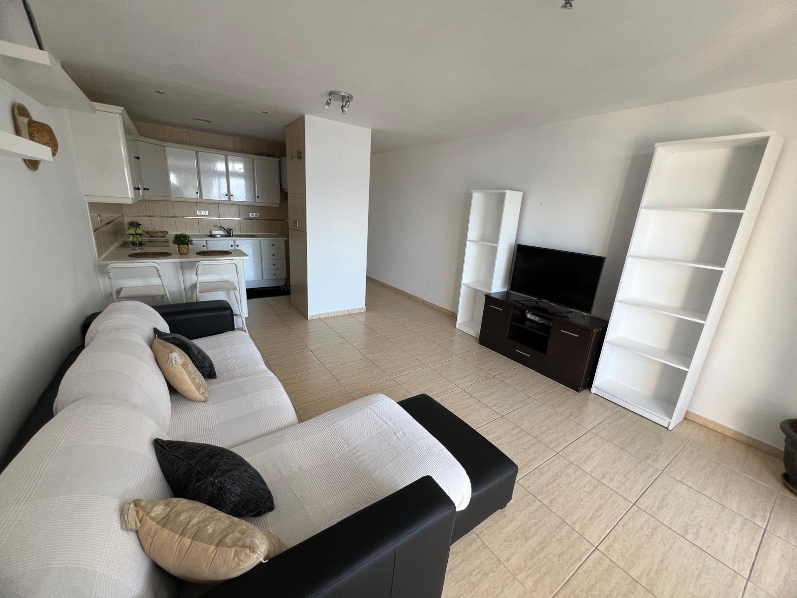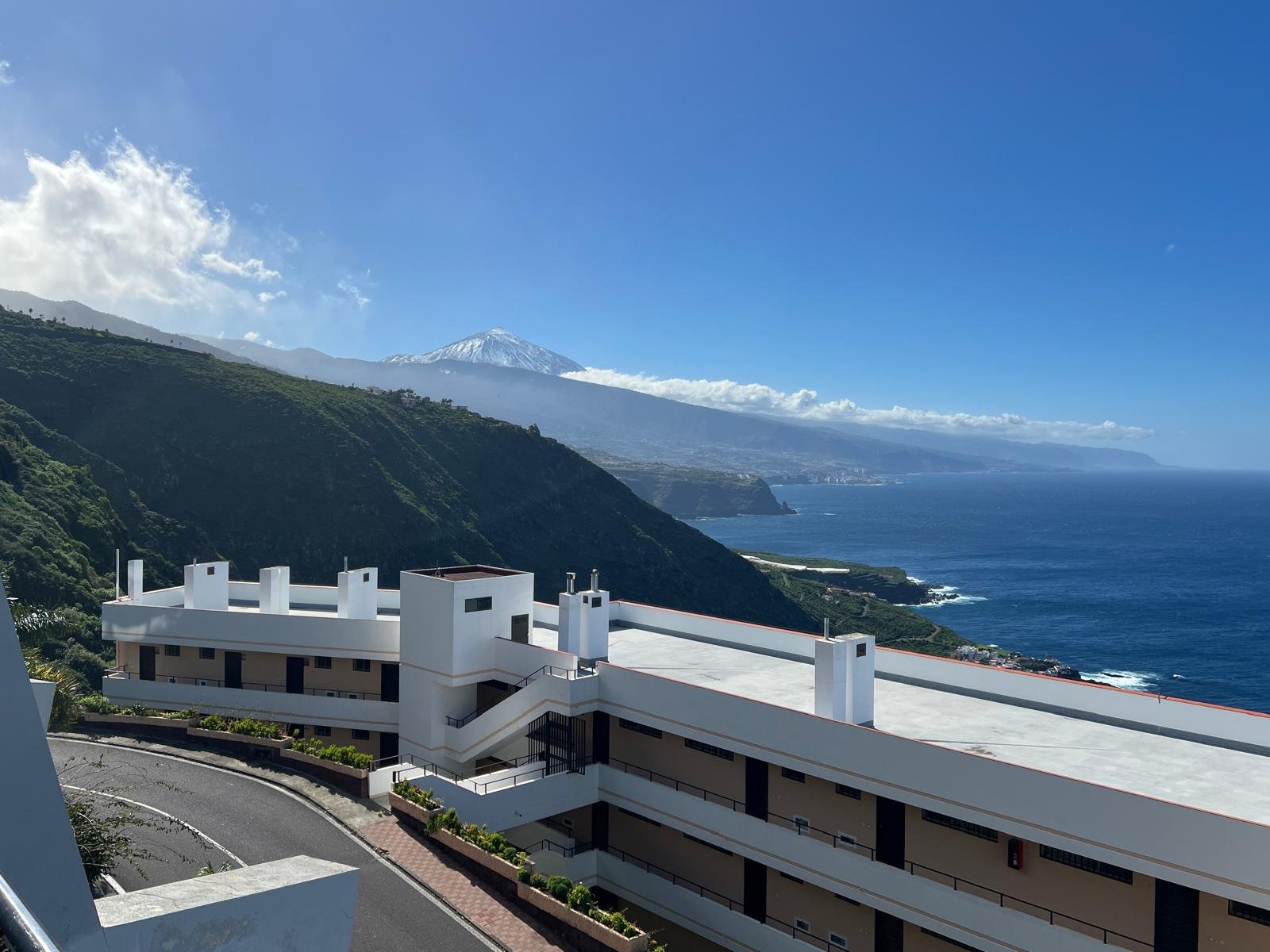 Compuesto por: 1 Dormitorio (con armario empotrado), Cocina-Salón (amueblada y equipada), Baño (con bañera) y amplia terraza techada, con unas vistas increíbles a la costa norte y El Teide).